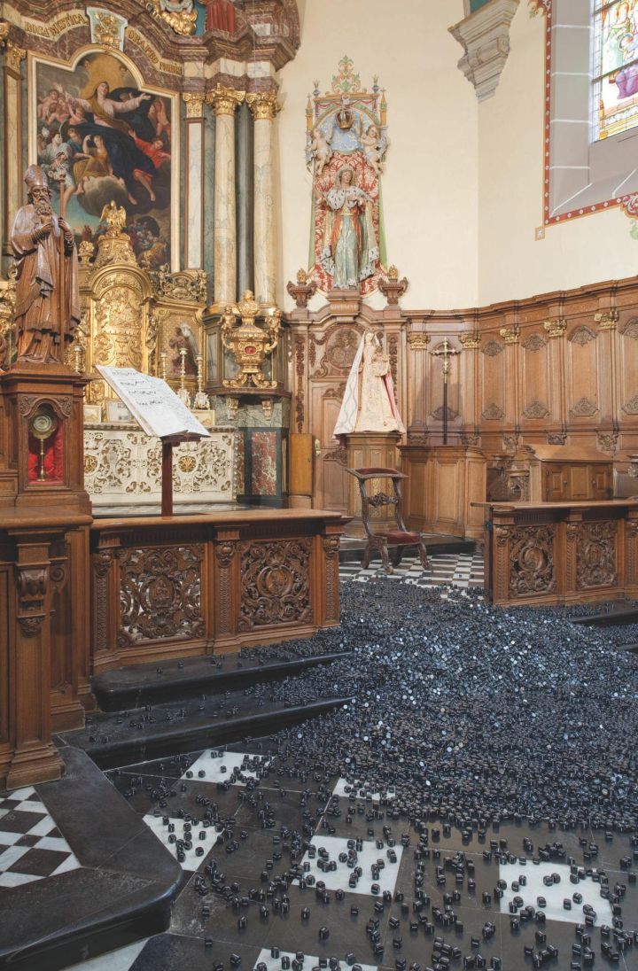 In 2012, the BPS22 partnered with the Notre-Dame à la Rose Hospital in Lessines to produce three exhibitions in the hospital museum, which is dedicated to medicine and religious life. The first part, entitled Memento, proposed a dialogue between fourteen contemporary works by Alain Bornain and the rooms of the museum. Alain Bornain (born in Genappe, Belgium, in 1965) is especially known for his series of Blackboards, an ensemble of canvases painted to look like school boards, skilfully playing on the visual confusion between the image and the medium. These series were a contemporary update on the theme of vanity. He has since expanded his disciplines although his principal interests remain the same: memory, death, communication and so on.