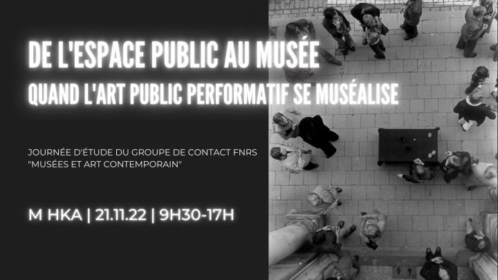 À travers les exposés de Mélanie Boucher (UQO), Éric Mangion (Villa Arson, Nice), Johan Pas (AP School of Arts, Anvers), Annalisa Rimmaudo (MNAM-Centre Pompidou) et Pierre-Olivier Rollin (BPS22, Charleroi), nous verrons en effet qu’il existe autant d’œuvres performatives dans l’espace public que de façons de les exposer et de les pérenniser dans l’espace muséal.