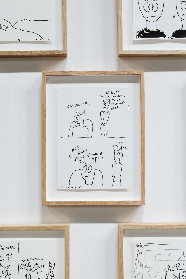 Alain Séchas, Insta Dessin - Je ne m'ennuie jamais… 2021, Feutre acrylique sur papier. Courtesy de l'artiste et Galerie Laurent Godin Paris. Photo Leslie Artamonow