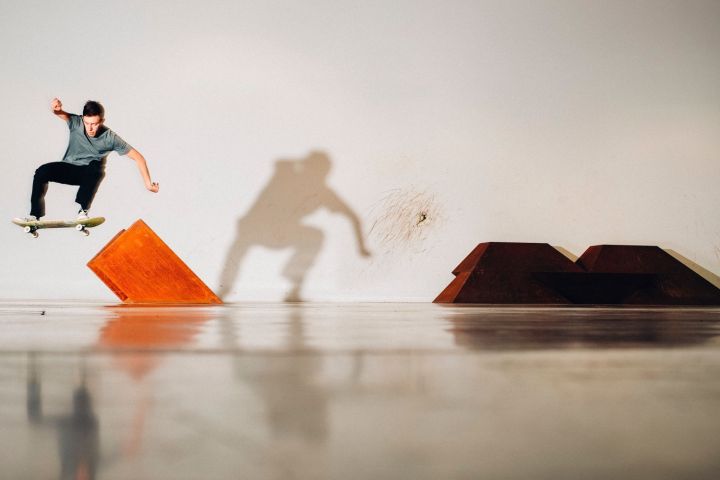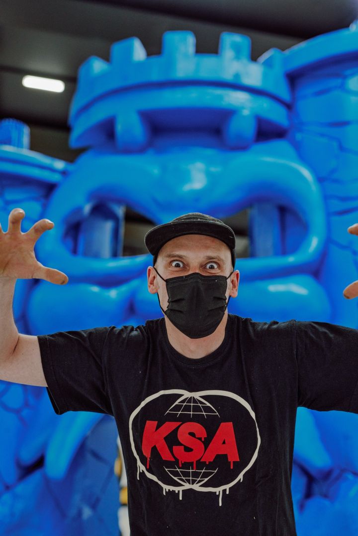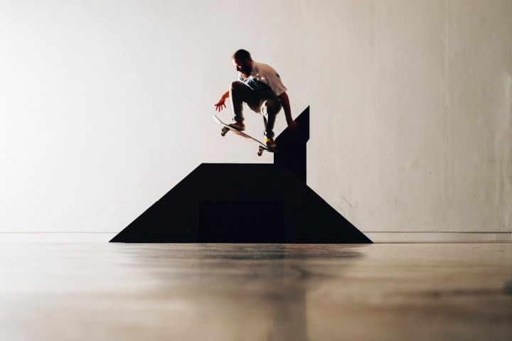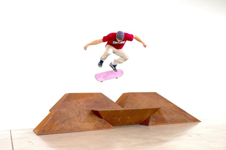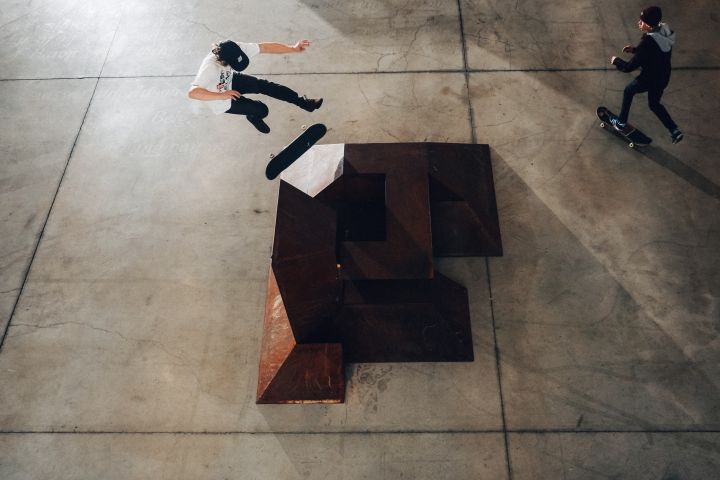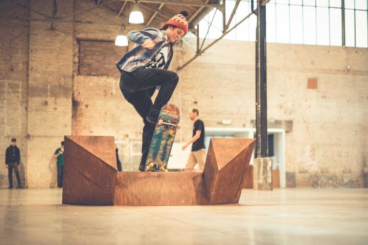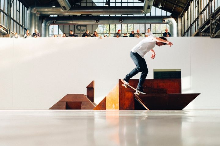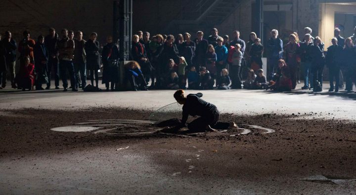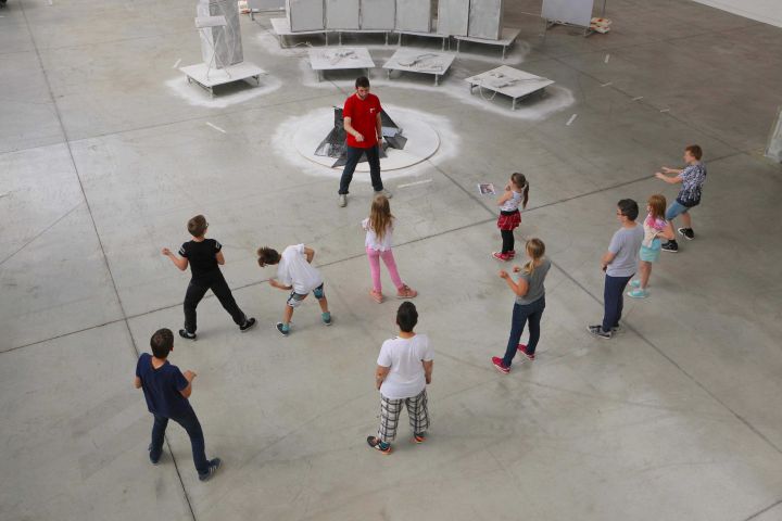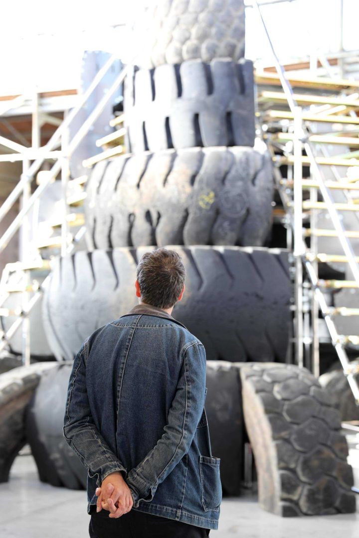 Antony Baclene in BPS22, Paving Space, Raphael Zarka, 2017. Photo : thomasmarchal.com