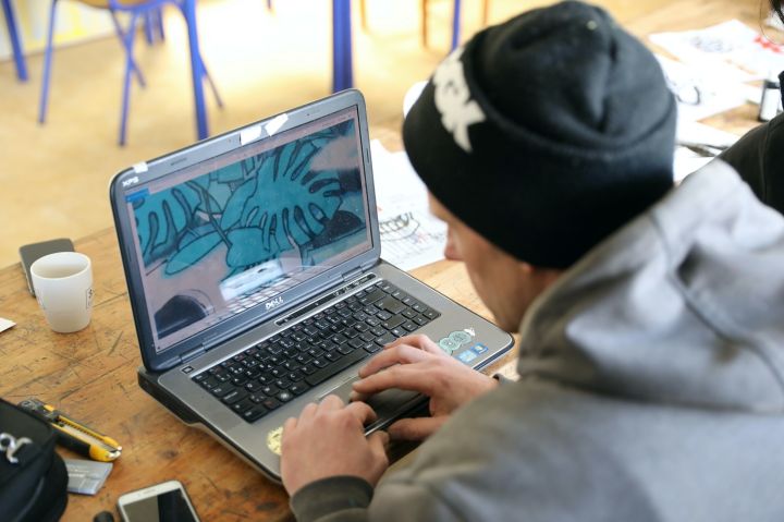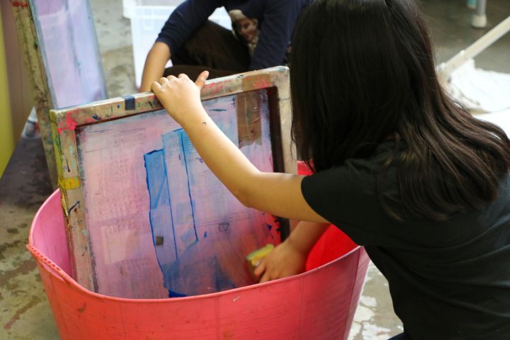 Atelier sérigraphie lors d'un stage en 2021