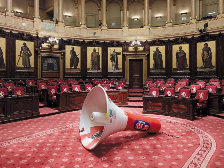 Vue de l'exposition La Colere de Ludd, BPS22, 2020 Photo : Leslie Artamonow