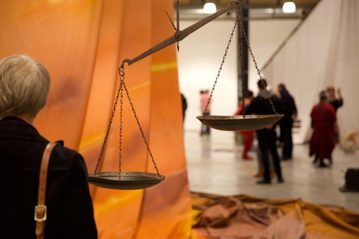 Visite guidée dans l'exposition Us or Chaos, 2018 © BPS22