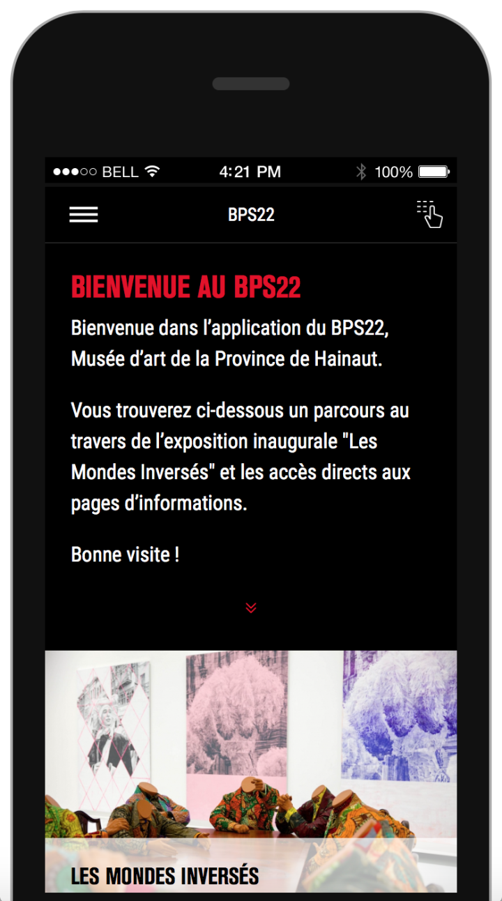 Le BPS22 est désormais sur vos appareils mobiles ! Découvrez notre application web gratuite et naviguez librement à travers l'exposition. Profitez d'une sélection d'œuvres coups de cœur, de visuels en haute définition, de vidéos, un plan détaillé des différentes salles du musée ainsi que des informations complémentaires concernant les œuvres.