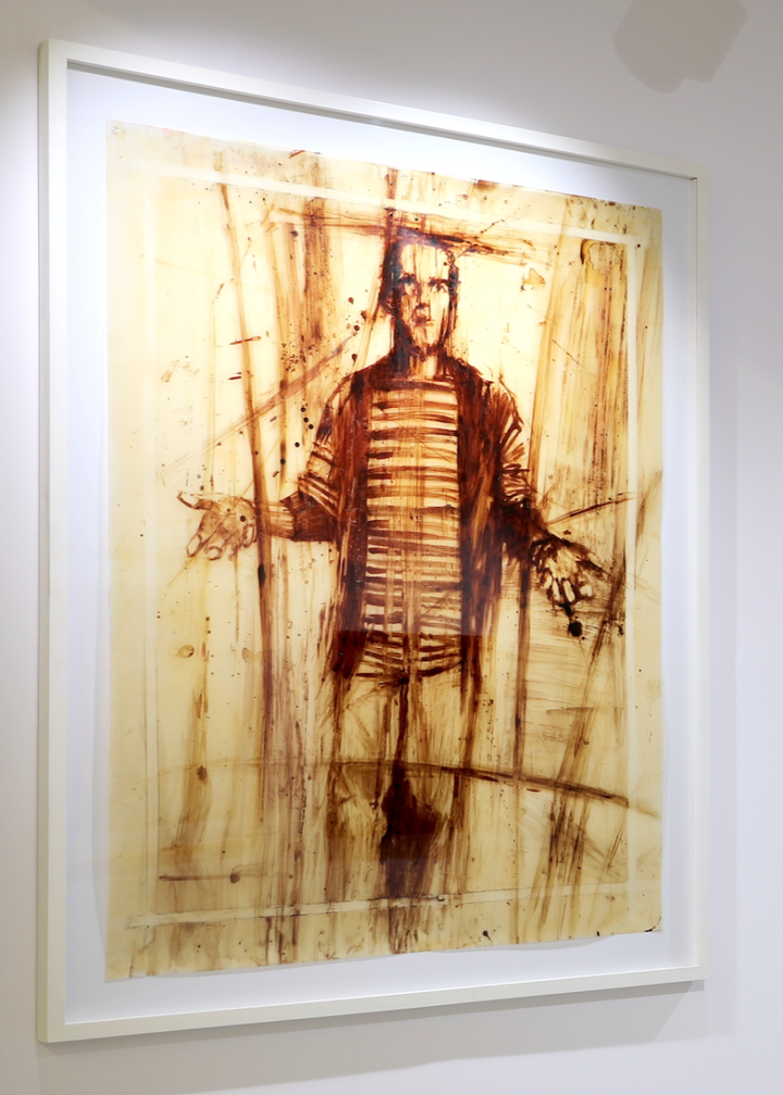 Autoportrait, 2007Dans son autoportrait de 2007, Michaël Matthys se représente dans une pose rappelant celle du Christ. L'oeuvre est unique car elle a été peinte avec le sang de l'artiste. Il s’agit donc d’une sorte d’autoportrait total ; l’incarnation d’un artiste en œuvre d’art.