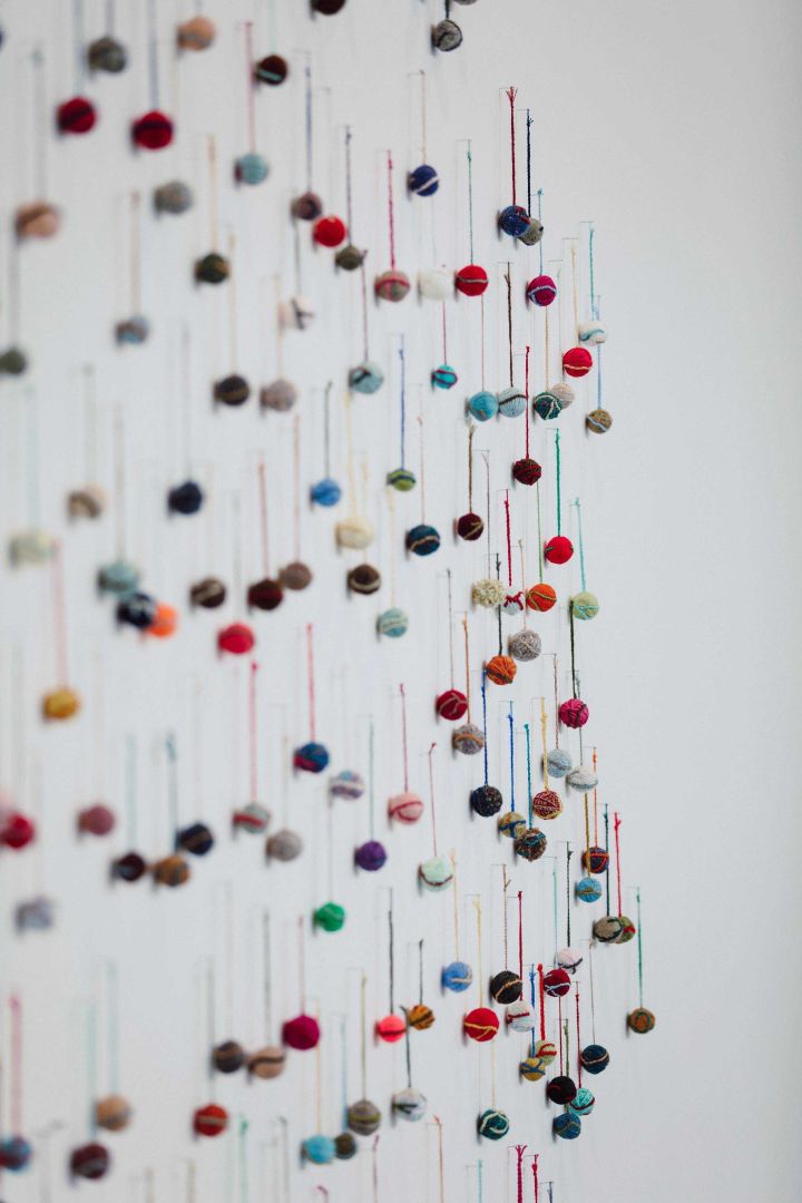 Les Boules de sainte Adèle (Recevoir une boule de sainte Adèle soulage des manques de chaleur et des trous dans la vie), 2016-2017S’apparentant une œuvre participative mais sans l’être vraiment, cette installation évoque la richesse des relations humaines. Il y a l'amour, qui commence ou qui blesse, celui qui passe par les chemins tracés entre un homme et son épouse, entre une mère et sa fille, entre parents et enfants, entre personnes, etc. Avec du fil, enroulé, noué, crocheté, tricoté ou brodé, Debliquy crée des surfaces, parfois des volumes.