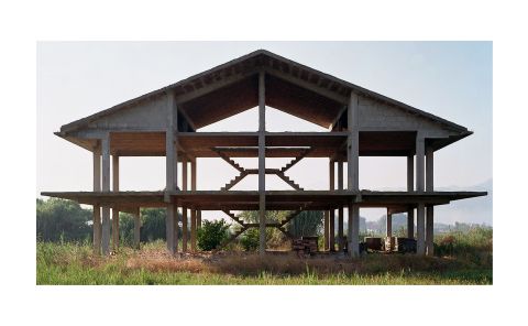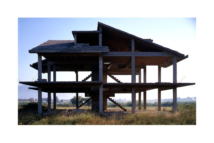Sperlonga (I), 1998 (2), juillet 1998Dès 1994, l’architecture s’impose comme sujet central des photographies de Frédéric Lefever. Le cadrage est serré, sans relief ni profondeur, afin de ne garder que l’essentiel, c’est-à-dire les formes, les lignes et les couleurs qui ont un sens dans la composition. Il utilise une chambre photographique qui lui permet d’obtenir une image redressée.
